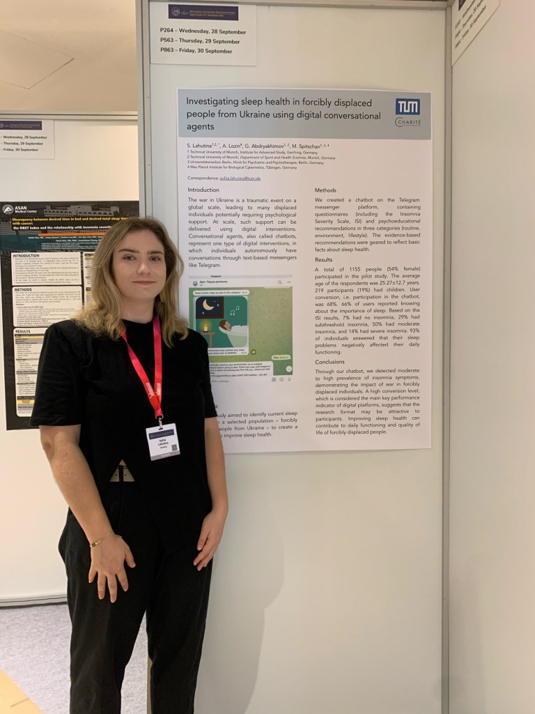The second turning point came when I became part of the sleep and chronobiology lab at the Technical University of Munich. My supervisor is a very talented professional and a person who manages to do a lot of different activities, supports his charges and shows a great example of humanity and harmony in the team. This is definitely my best team, in which there is not only a good leader but high-class professionals who are passionate about research and also motivate by their example.